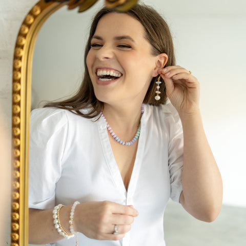 Morganite, Moonstone & Freshwater Pearl Earrings