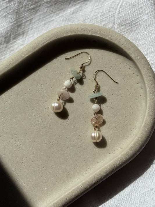 Morganite, Moonstone & Freshwater Pearl Earrings