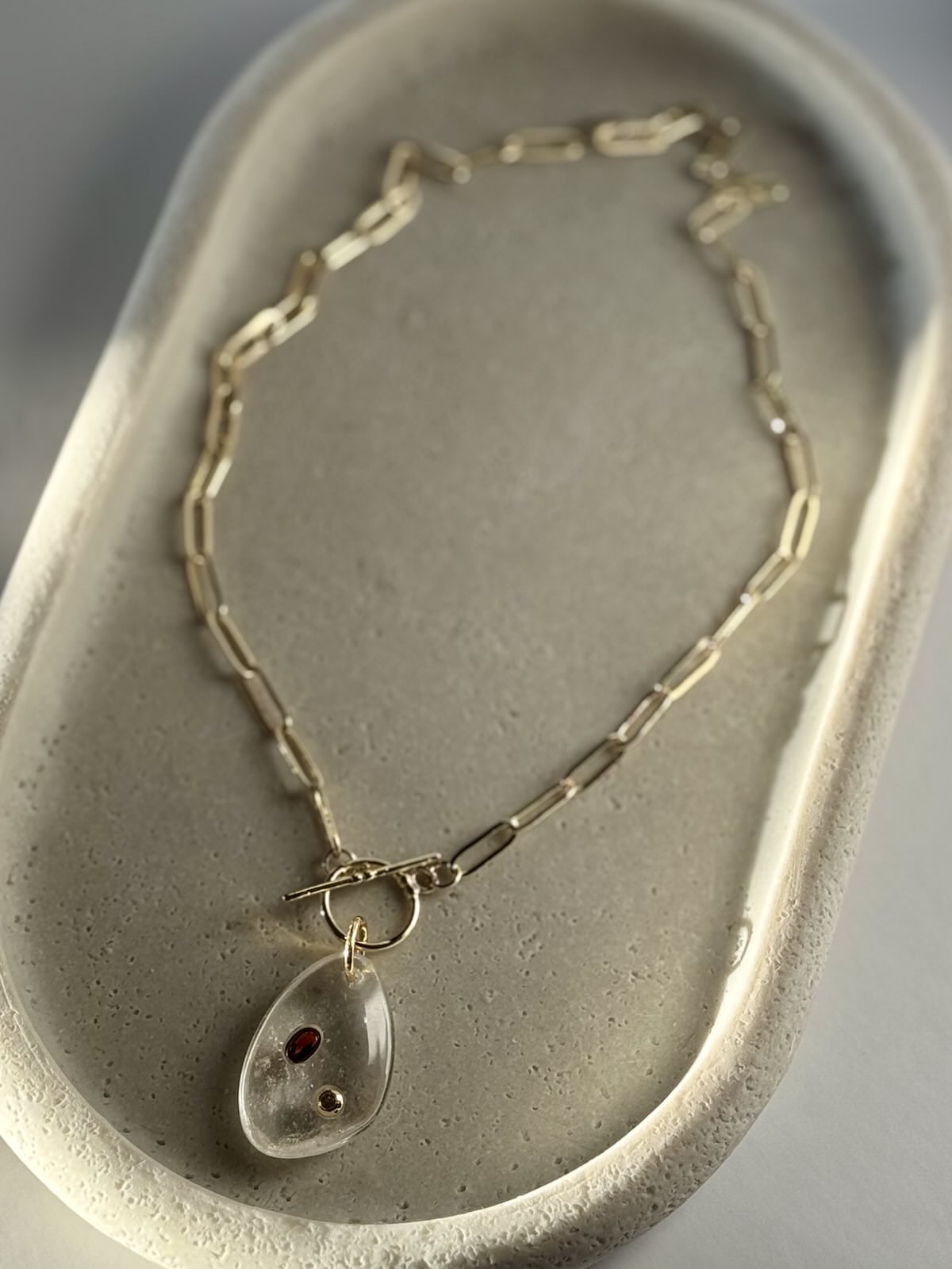 Glowing quartz charm — an elegant shape with two little glass embellishments that elevate the look of the necklace.