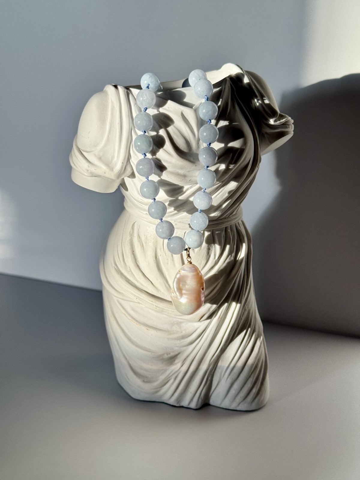 Artisan hand‑knotted construction: Strung on soft white silk cord and meticulously hand‑knotted between each bead — giving the necklace graceful drape, durability, and a tactile, luxurious feel.
