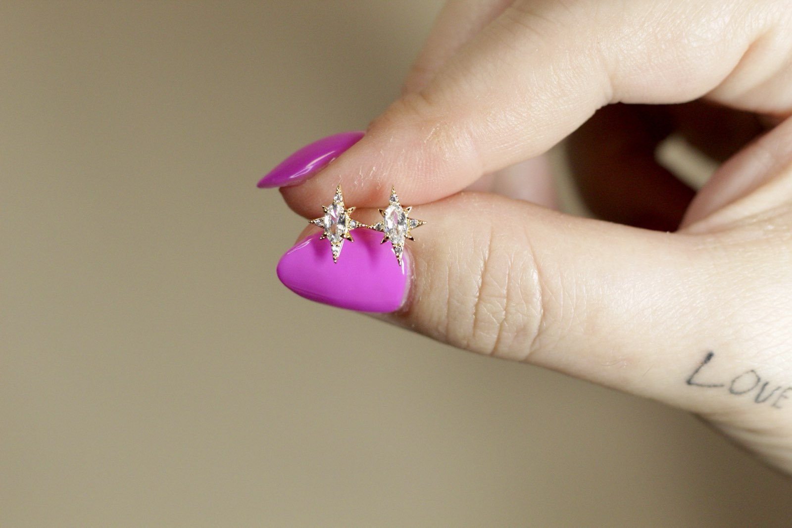 Beautiful and highly sparkly star-shaped earrings - these look great as their own subtle look, or as part of your earring stack. Featuring cubic zirconia.