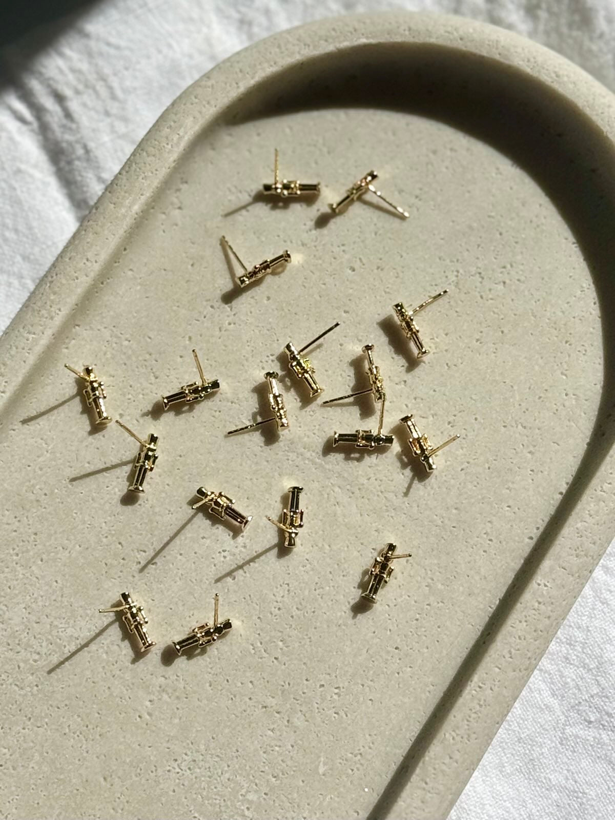 Studs are 14k gold-plated brass, posts are 925 sterling silver. Mindfully sourced.