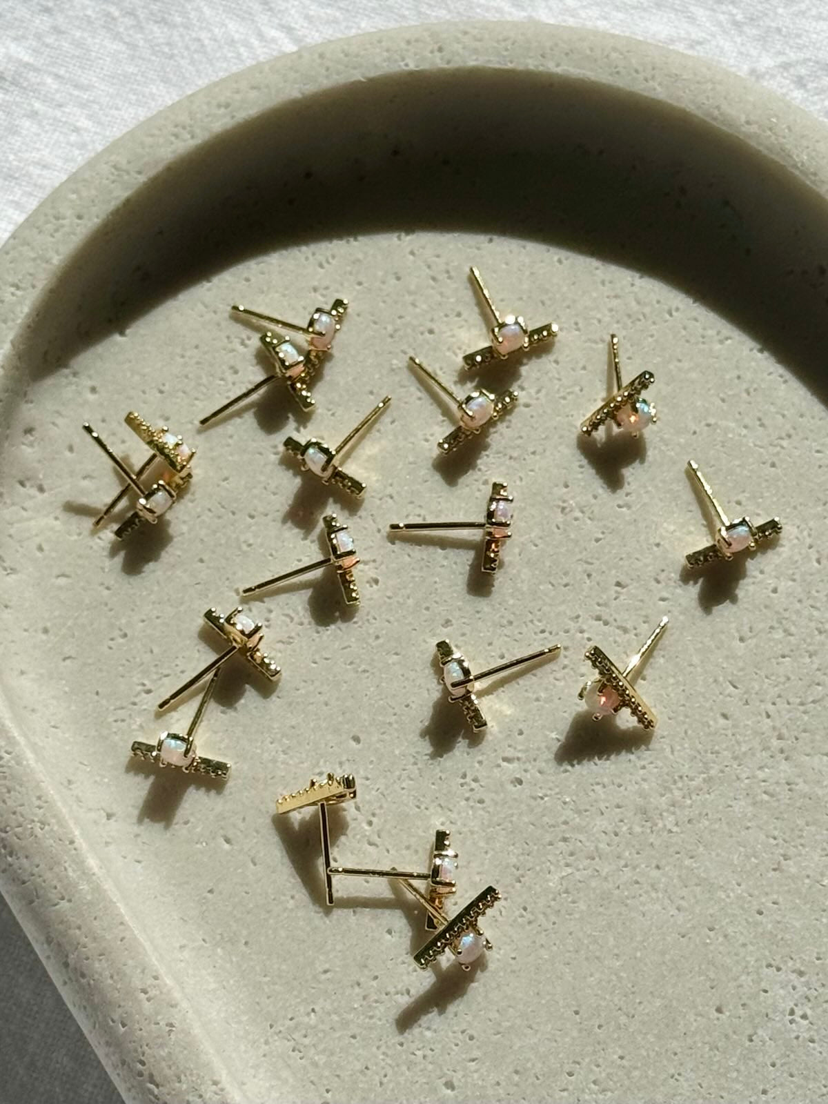 Opal Bar Stud Earrings