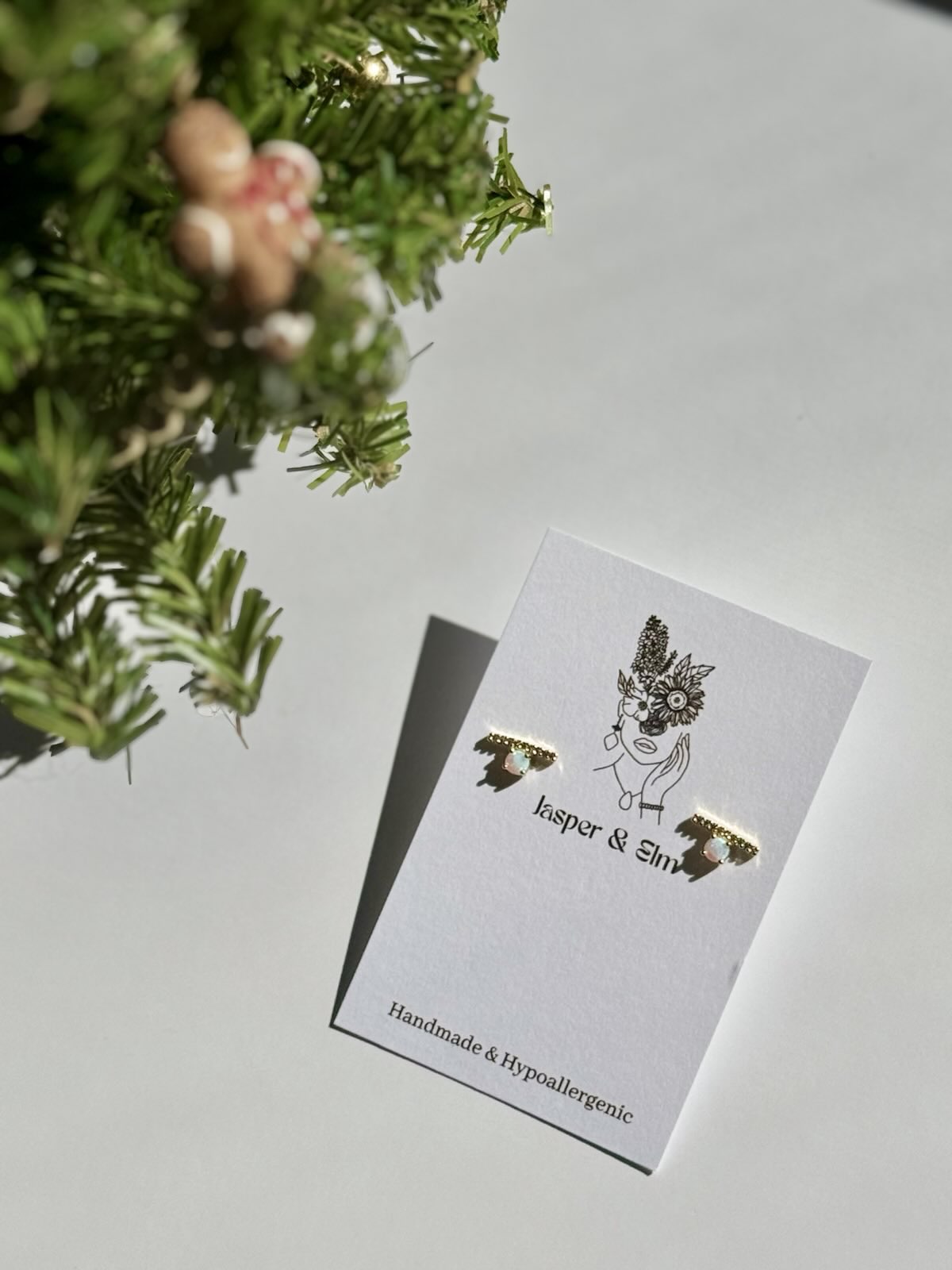 Lab created opals and cubic zirconia create the perfect stud earring for the holiday season!