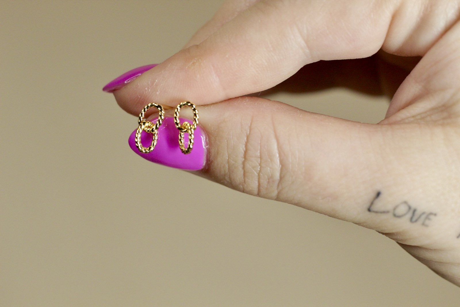 Dainty studs in gold-plated brass with 925 sterling silver posts. Perfect for everyday wear or stacking!